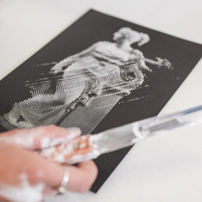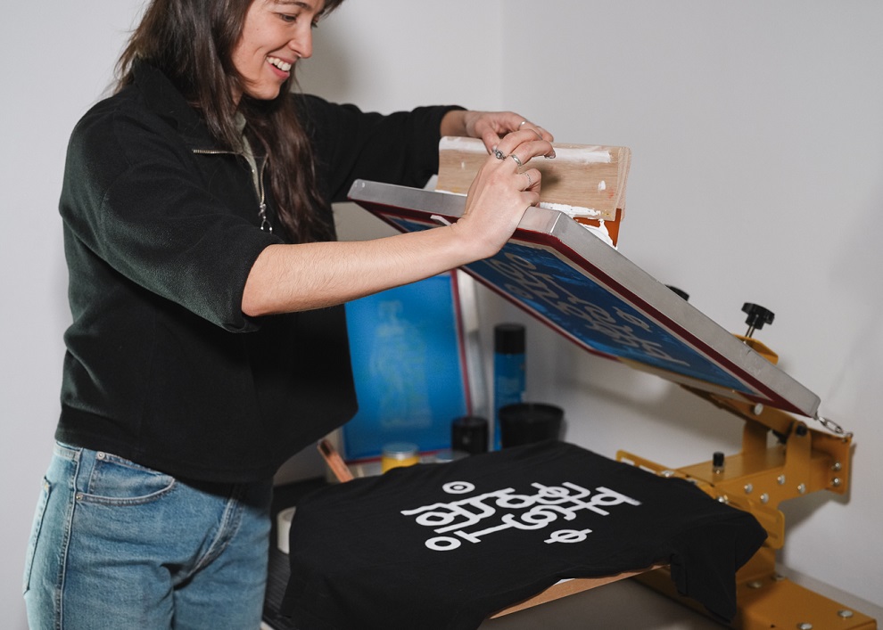 In ihrem Atelier bietet sie Workshops in grafischer Gestaltung und Siebdruck an.