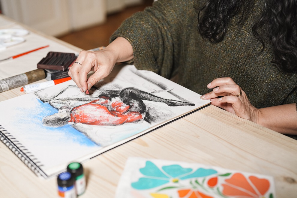 Im offenen Atelier bietet sie Raum, verschiedene Techniken wie Aquarell, Acryl, Mixed Media, Collagen sowie kreative Bastelideen wie Photopatch, Serviettentechnik und Wachsmalen auszuprobieren. Sie gibt Einblicke in digitale Tools wie Photoshop und Procreate. Ivi begleitet ihre Teilnehmenden dabei, ihre eigene Kreativität fernab von Normen und Stereotypen zu entdecken.