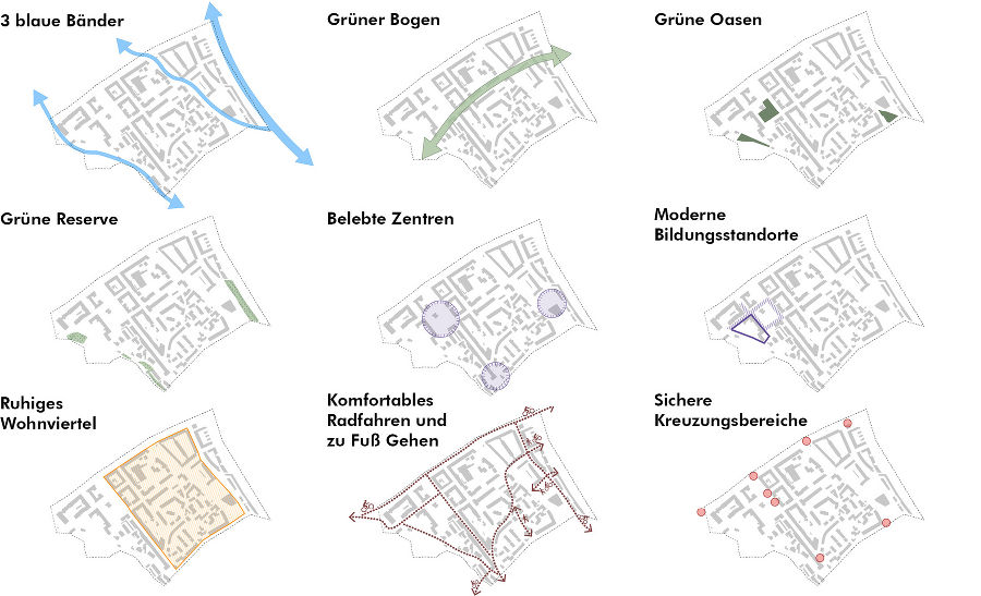 Das Motto "Vielfalt am Wasser" wird durch folgende Leitmotive für die Gegenwart und Zukunft des Stadtteils konkretisiert: