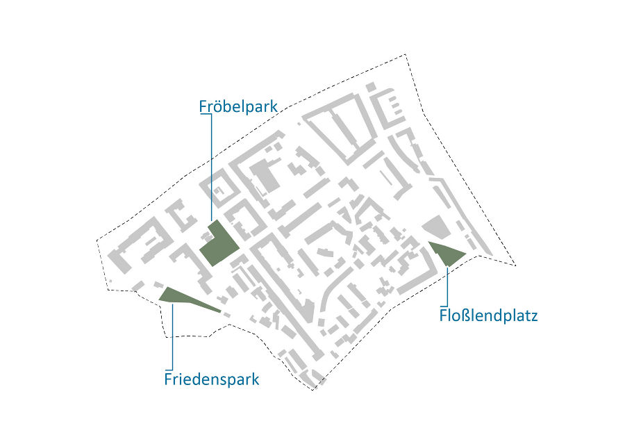 Im Handlungsfeld "Grüne Oasen" werden Empfehlungen für folgende Parkanlagen formuliert: