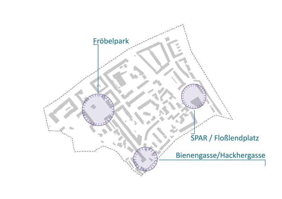 - Sichere Kreuzungsbereiche: Dieses Handlungsfeld behandelt die Entschärfung von Gefährdungsbereichen im Straßenverkehr, insbesondere entlang von Hackhergasse und Kalvariengürtel.