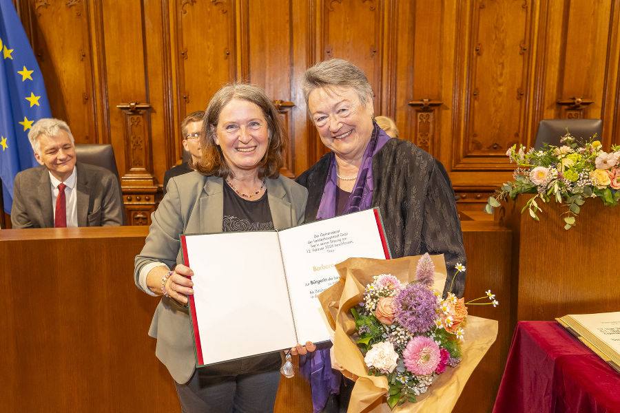 In feierlichem Rahmen überreichte die Bürgermeisterin anschließend die Bürger:innenbriefe an Veronika Dreier, Ingrid Franthal, Barbara Gross, Elke Gruber, Jörg Hofreiter, Luise Kloos, Fred Ohenhen, Hans Roth und Gerhard Widmann, die mit dem heutigen Tag in den Kreis der nunmehr 92 lebenden Bürger:innen der Landeshauptstadt Graz aufgenommen wurden.